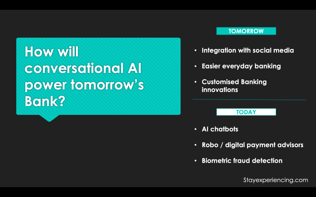 So there you have it 3 ways that Conversational AI will power tomorrow’s Bank. We’ll see a move from text based conversational AI to voice based AI: